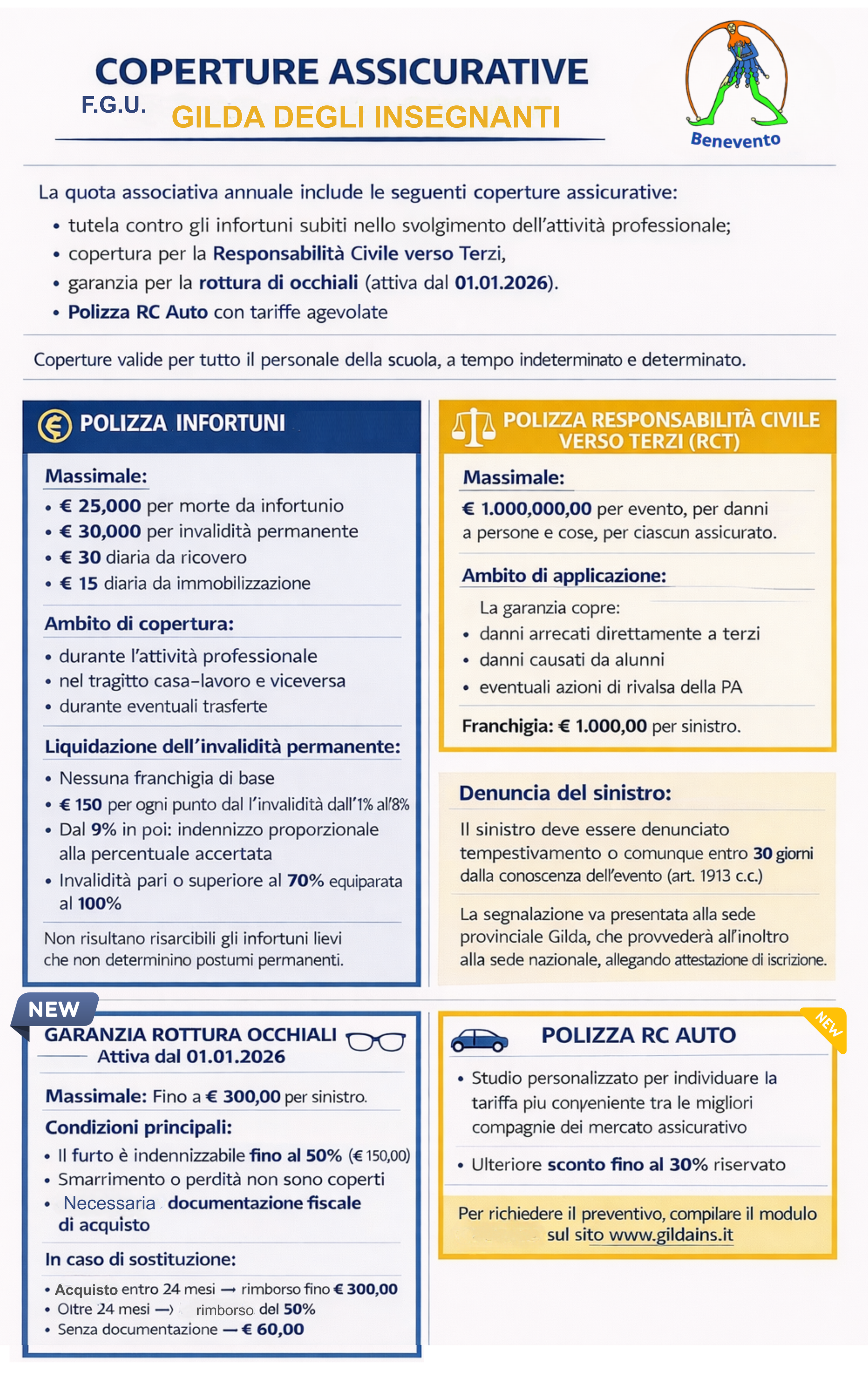 L’iscrizione annuale alla Gilda degli Insegnanti comprende un sistema di coperture assicurative dedicate, oggi arricchito da importanti novità.